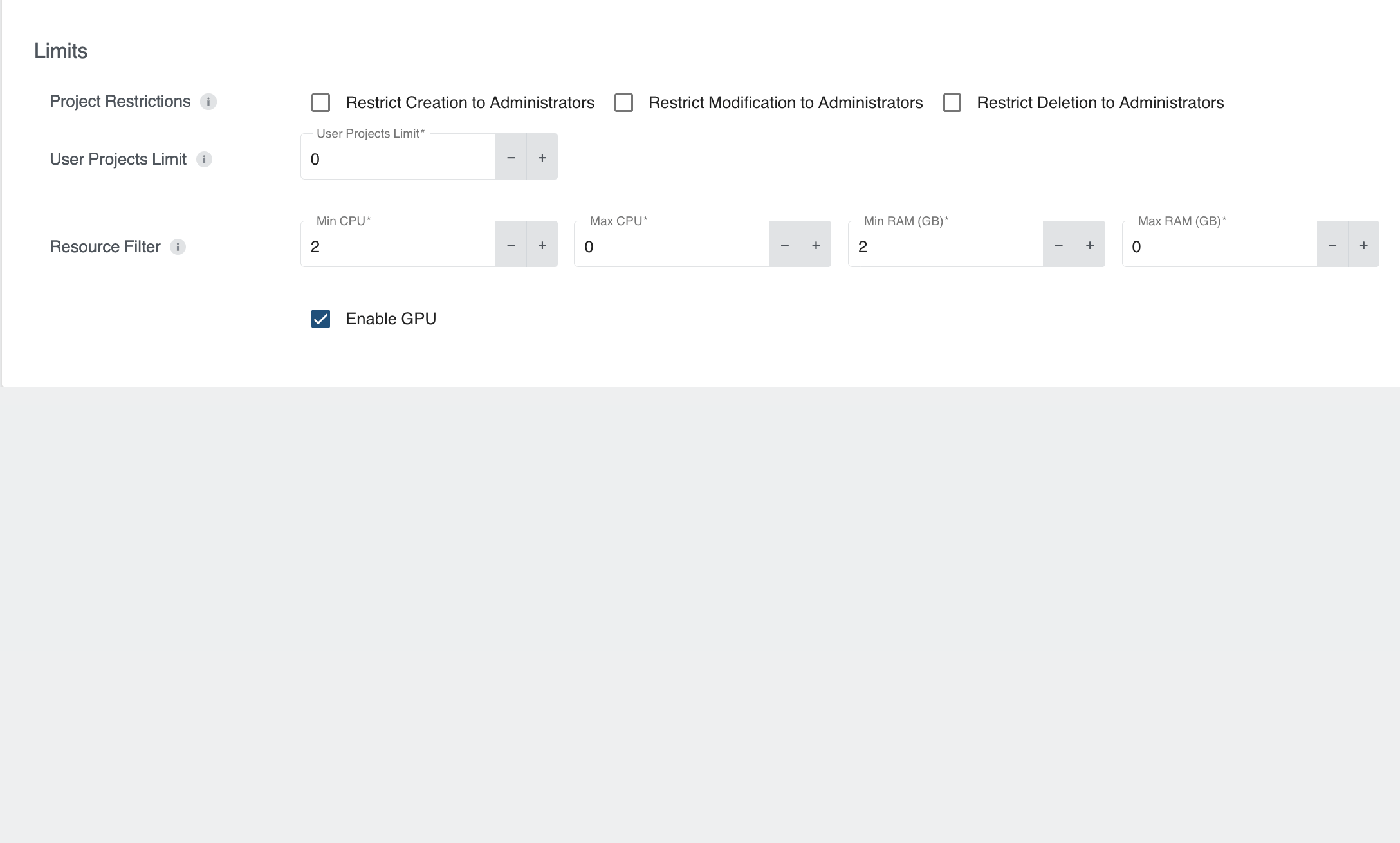 - Default: Either can be set default which will be applied when creating a new User Cluster