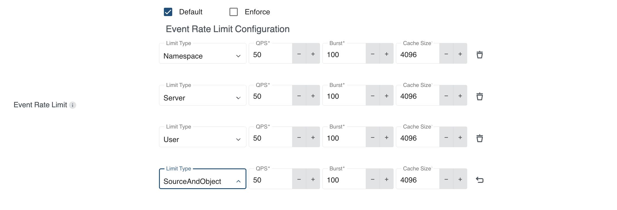 Event Rate Limit Enhancements: Dashboard now supports all limit types of the Kubernetes EventRateLimit admission plugin: Server, Namespace, User, and SourceAndObject, enabling flexible event rate limiting policies.